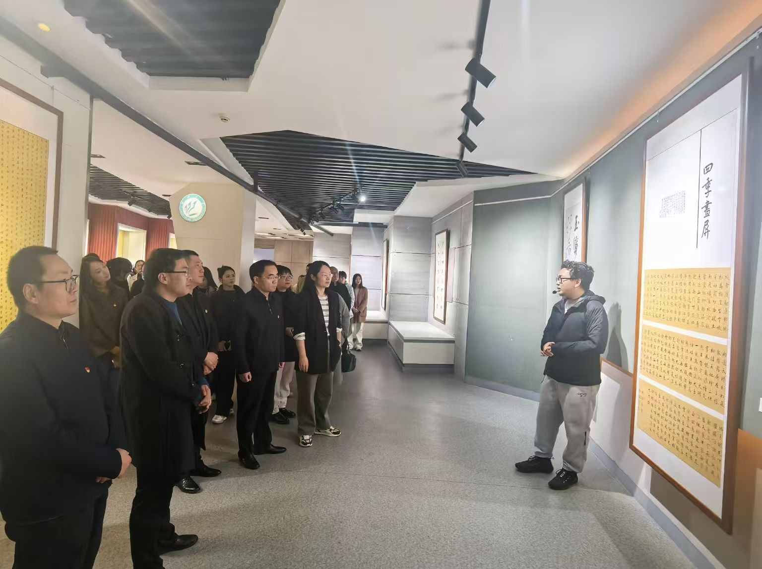 为深入学习贯彻党的二十届四中全会精神,进一步推进全面从严治党,提高党员干部廉洁意识,11月13日下午,成人网 和美术与设计学院组织全体教师党员前往西校区文华苑美术馆“廉心焕彩·清风聊大”廉洁文化作品展,联合开展主题党日活动。