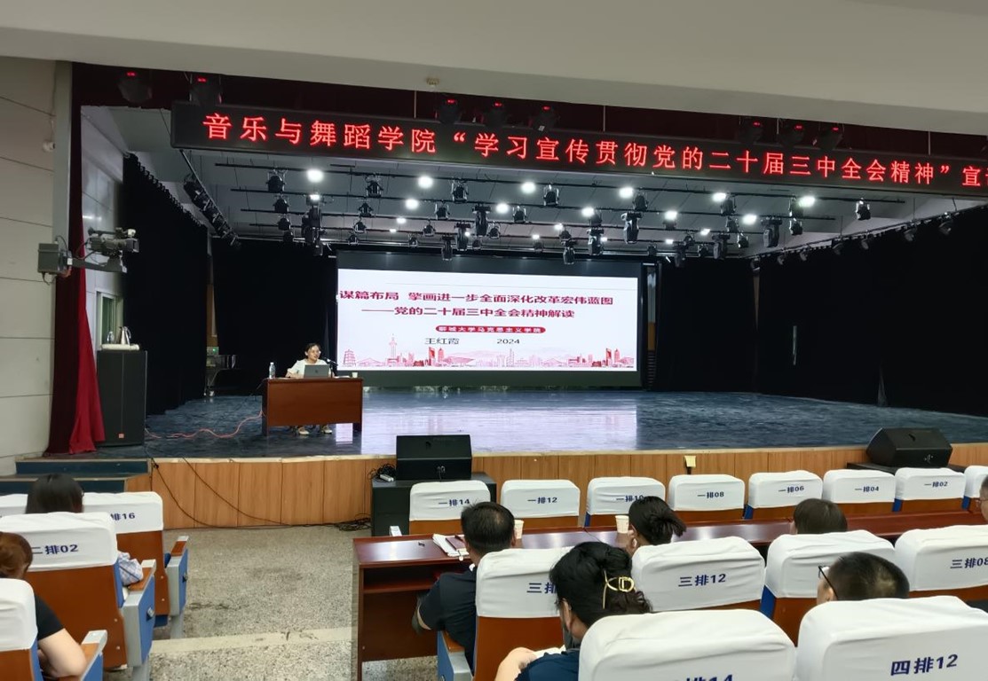 为深入学习贯彻党的二十届三中全会精神,根据学校党委统一部署和相关通知精神,9月5日下午,成人网 在9号教学楼音乐厅举办“学习宣传贯彻党的二十届三中全会精神”专题宣讲报告会,校宣讲团成员、马克思主义学院教授王红霞,院党委书记宗传军先后为大家作宣讲报告。学院全体教工、学生党员、入党积极分子及学生骨干代表参加。