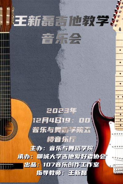王新磊老师在多年的吉他教学事业中,培养了诸多优秀的吉他专业学生,教学有方。本次晚会旨在展示王新磊老师吉他教学成果,传播吉他乐曲美学思想与吉他乐曲的演奏魅力。