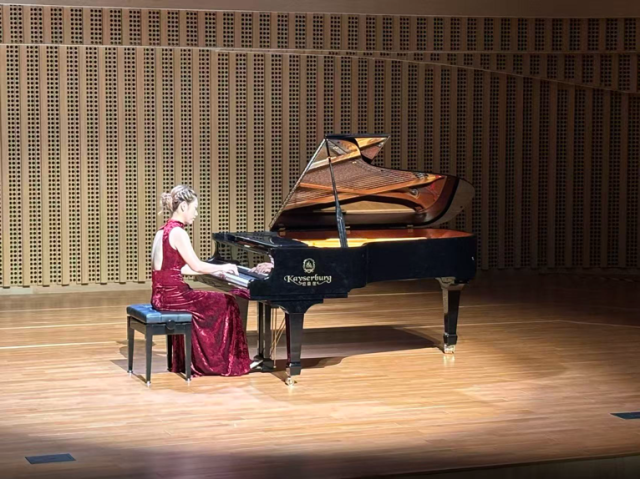 音乐会现场氛围浓厚,师生共同沉浸在多元风格的音乐盛宴中。青年钢琴家李文哲以娴熟精湛的技艺,引领师生开启跨越时空的音乐漫游。演出以“古典与浪漫的回响”为主线,先后演绎海顿《F大调奏鸣曲》、李斯特《但丁读后感》《彼得拉克十四行诗》《钟》、亨利·杜蒂耶《Le Jeu Des Contraires》及张朝《努玛阿美》,涵盖古典、浪漫、现代及民族风格曲目,兼具艺术质感与审美价值。演奏间隙,其分享对经典作品的理解,强调音乐承载深层情感与文化底蕴,助力观众读懂音乐内涵与温度。整场演出让师生近距离感受钢琴艺术魅力与精神力量,收获扎实专业启发与深刻艺术熏陶。