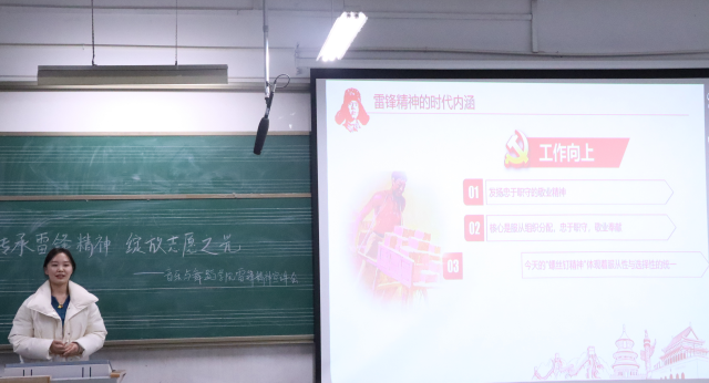 会议伊始,宣讲员通过质朴的言语讲述了雷锋同志生平、雷锋精神的内涵、雷锋精神的时代价值以及新时代学习践行雷锋精神的重大意义。宣讲员用生动的语言、形象的图片和真实的情感讲述雷锋的故事,让大家深刻地感受到他无私奉献的精神以及对工作和生活的热情,生动形象地展现了雷锋精神的实质。