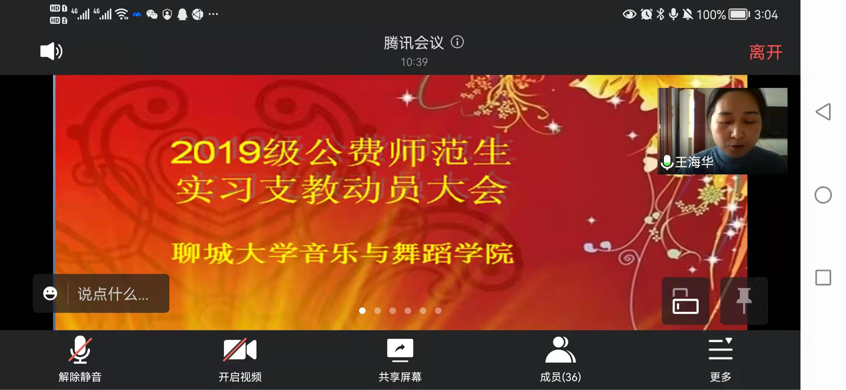 会议开始,李斌老师详细的介绍了实习支教工作的内容以及具体要求,并且为学生们提供了实习教案和教学课件,倡导同学们通过教育研习记录,积极了解相关学科教研工作开展情况,并且把自己的实习支教经历记录在实习工作月志中,为今后的教学提供努力的方向。王海华老师就音乐治疗为例,为同学们讲述了如何将课程教学转化成相关课题、论文的方法,让同学们认识到音乐治疗学科的基础内容以及核心课程。在对于音乐治疗协助个人发展的几个层面,王海华老师为同学们做出来详细的讲解,又在音乐治疗可能研究的课题和题目上与同学们进行讨论,王海华老师也告诉了同学们音乐治疗上临床转研究的“三下”步骤,让同学们可以更深透的将音乐治疗课程转化为相关课题和论文。同学们积极探讨大学生创新创业训练计划的基本情况,石晓晗老师就2019级公费师范生实习支教具体举措作出详细解答,最后对相关课题和论文做出总结。2019级全体公费师范生们积极响应学院对他们的实习支教要求,并且对即将到来的实习支教生活充满信心,表示一定会完成学院发布的教学工作内容。