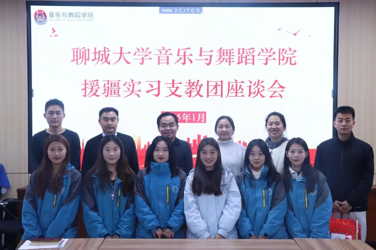 座谈会上,同学们分享了各自在援疆实习支教期间的心得体会,认为此次支教经历学习到了丰富知识和经验,也是一段难忘的经历。路灿云肯定了同学们的付出与成绩,希望同学们能够继续秉持勤劳与坚韧的品质,以不懈的奋斗作为青春的底色,在未来继续用辛勤的汗水和不懈的奋斗谱写更加绚丽多彩的青春华章。蘧广震对同学们未来学习规划也提出了建设性的意见,希望同学们不忘初心,为自己在聊大画上圆满句号。王海华表示,希望同学们能在支教过程中找到原有的不足之处和未来进步的空间,锦上添花。张萌向援疆支教学生致以深切关怀,希望同学们能铭记这段援疆支教的宝贵人生经历。孙旭也高度赞扬了同学们无私奉献、积极奋进的支教精神,对同学们表达了最真挚的问候和祝福。最后,学院各领导为参与援疆支教的学生颁发纪念品,并希望同学们能够牢记使命,不忘初心,在音乐与舞蹈的教育行业上越走越远。