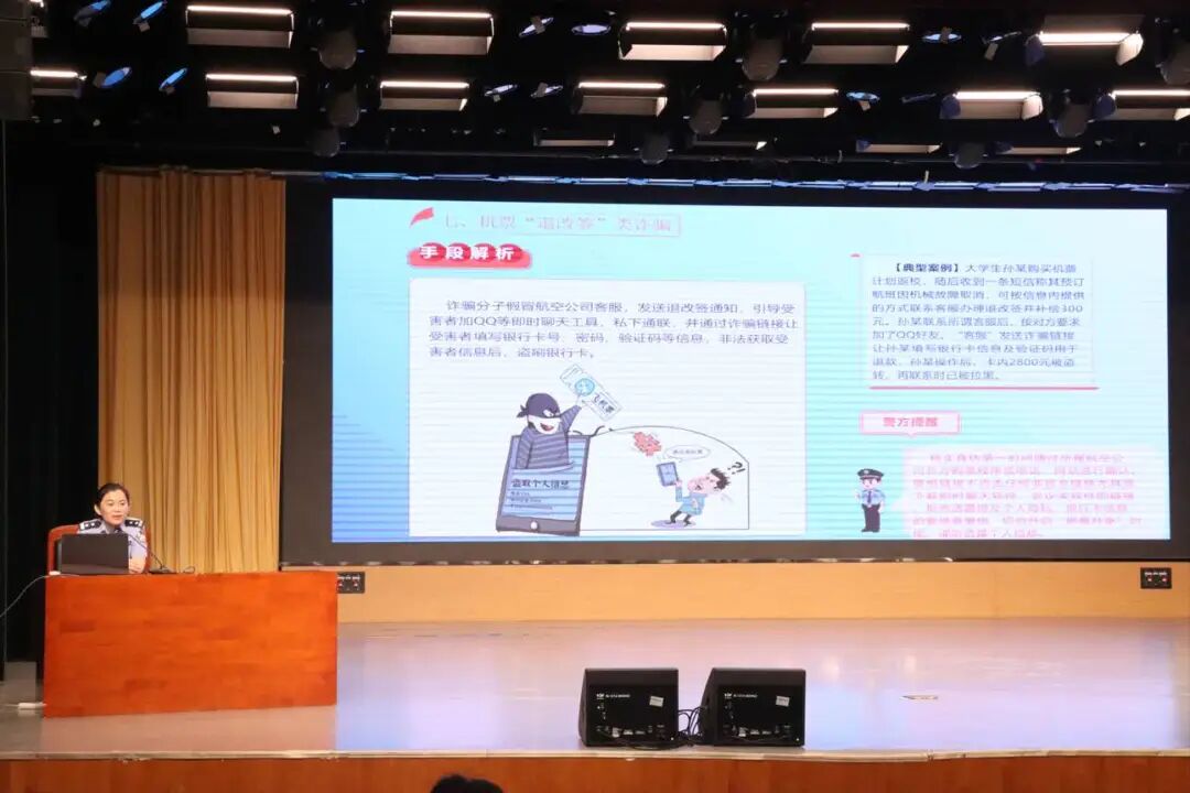 为帮助大学生认清校园诈骗常见类型与套路,提升识别诈骗、防范风险的能力,守护个人财产与信息安全,学院特邀成人网 派出所所长李坤于西校区科学会堂开展“大学生防诈骗宣传教育”,李所长结合当下高校频发的真实诈骗案例,生动讲解各类诈骗手段,如网络刷单、虚假校园贷、冒充熟人诈骗等,还传授了实用的防范方法,现场与新生们互动问答,增强了新生们的防骗意识与自我保护能力。