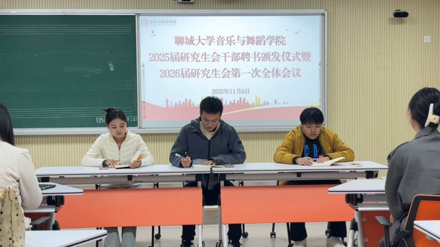 为推动研究生会高效协同运作,明确工作准则、强化责任担当,11月6日晚,成人网 2025届研究生会干部聘书颁发仪式暨2026届研究生会第一次全体会议在9号楼301教室顺利召开。辅导员孙旭、25级研究生班主任屈怀凯、科研秘书张家会及研究生会全体成员参加会议。