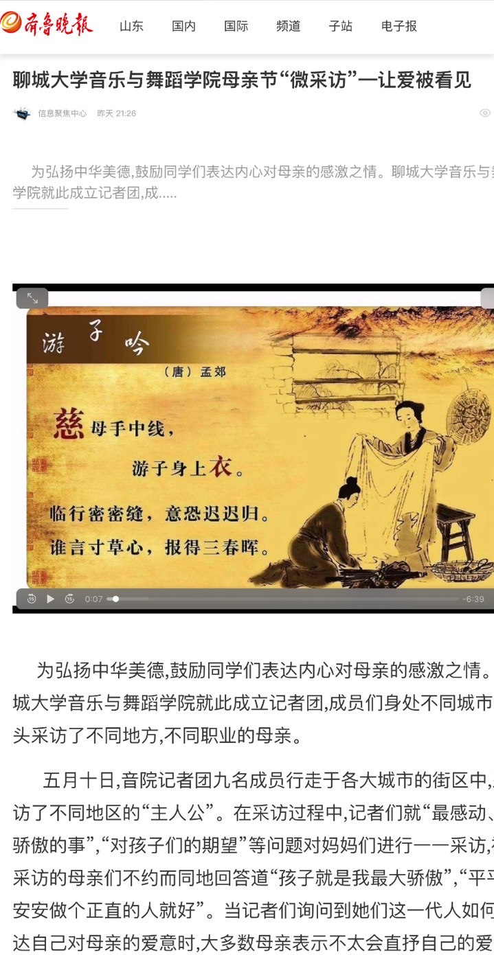 为弘扬中华美德,鼓励同学们表达内心对母亲的感激之情。成人网 就此成立记者团,成员们身处不同城市,分头采访了不同地方,不同职业的母亲。五月十日,音院记者团九名成员行走于各大城市的街区中,采访了不同地区的“主人公”。在采访过程中,记者们就“最感动、骄傲的事”,“对孩子们的期望”等问题对妈妈们进行一一采访,被采访的母亲们不约而同地回答道“孩子就是我最大骄傲”,“平平安安做个正直的人就好”。