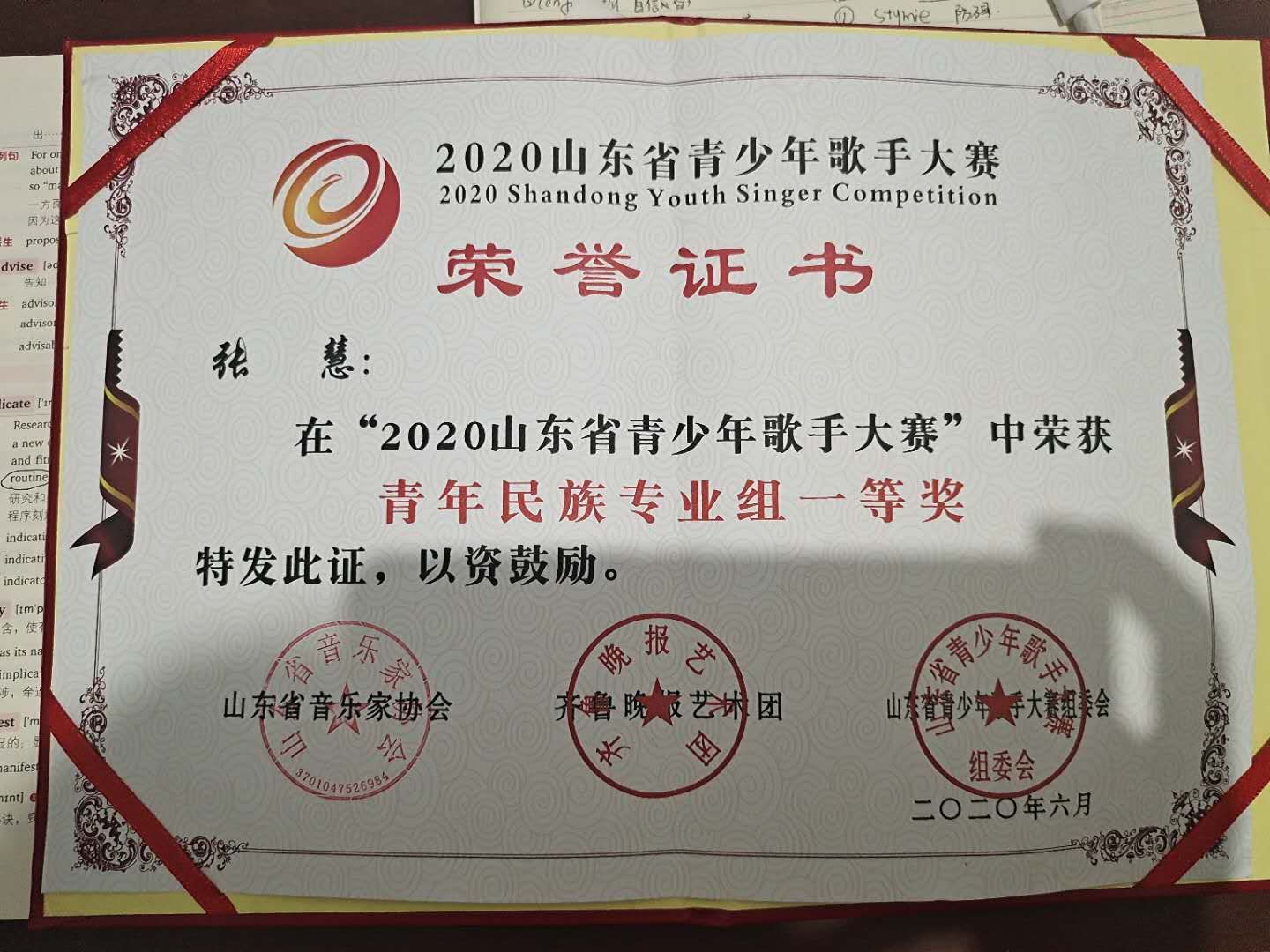 喜报:成人网 在库学子张慧2020山东省青少年歌手大赛青年民族专业组一等奖孟维鹏在2020山东省青少年歌手大赛荣获青年民族专业组二等奖