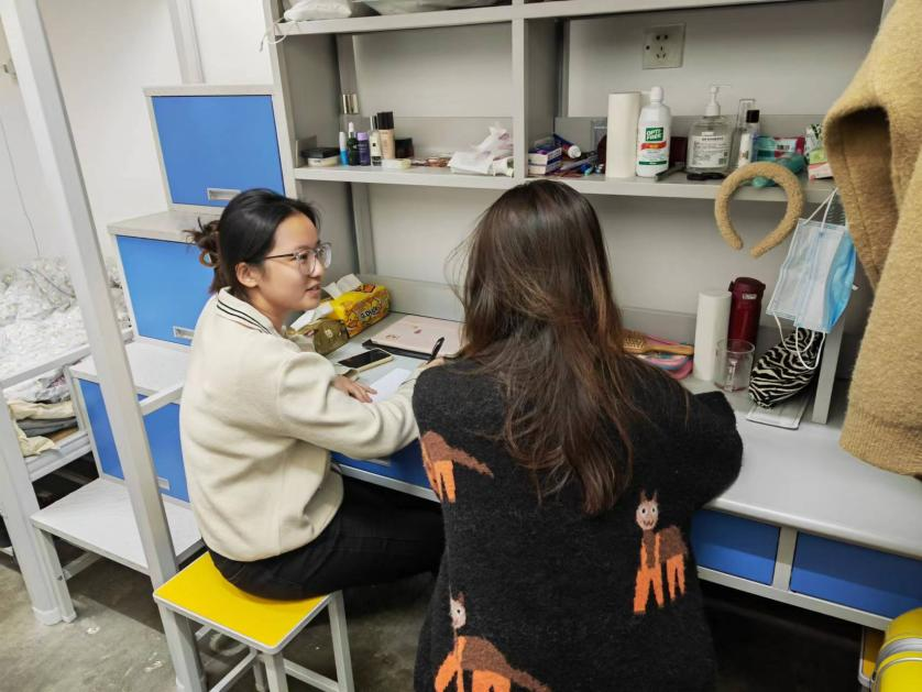 冬意正浓,温情满满。学院岳圆老师前往学生宿舍,与家庭经济困难学生进行了亲切友好地交流。从宿舍日常生活到学习情况,老师们通过与学生的倾心交谈,充分了解了学生目前生活的状况与实际困难,并积极为他们答疑解惑。同时,在当前疫情大背景下,老师们向学生们强调,疫情期间要做好个人防护,切记不可松懈。“困难只是暂时的,要自立自强,不断成长。”学生们很是感动,纷纷对学院领导老师们感谢不已,并表示在未来的学习生活中,会积极进取,勤奋学习,以良好表现、优异成绩来回报家人、学校和社会。