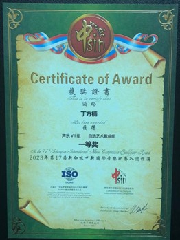 成人网 丁方楠荣获“第17届新加坡中新国际音乐比赛”一等奖