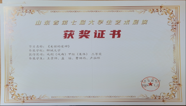 在刚结束的山东省第七届大学生艺术展演比赛中,成人网 家庭经济困难家庭的学生凭借其卓越的才华和不懈的努力,在众多参赛者中脱颖而出,荣获佳绩。