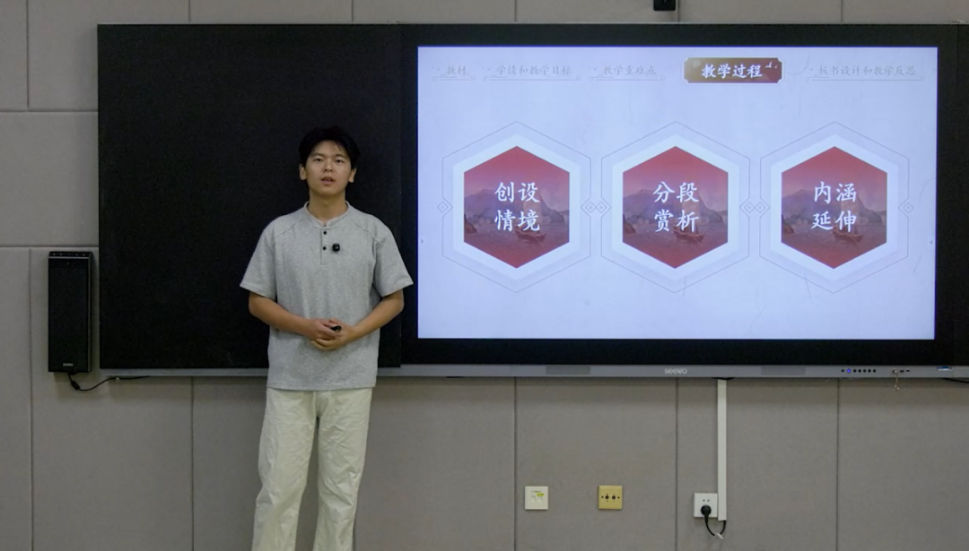 成人网 始终高度重视师范生教学技能竞赛在人才培养中的引领作用,着力营造“以赛促学、以赛促教”的良好氛围。备赛过程中,王海华、王蒙萌、杨康宁三位指导教师结合祁彦峰同学的专业特长与艺体类初中教学的核心需求,量身定制了系统的备赛方案。针对艺体学科兼具专业性与实践性的特点,老师们从教学目标设定、教学环节设计、课堂互动形式到艺术素养融入等方面逐一拆解,手把手打磨每一个细节。