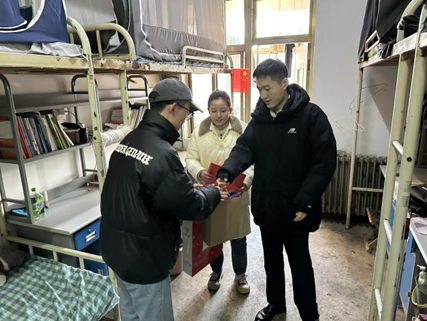 1月8日,成人网 开展“情暖冬日,爱满宿舍”寒假家庭经济困难学生宿舍走访慰问活动。团委书记张萌、辅导员岳圆、孙旭组成慰问小组,深入学生宿舍,为家庭经济困难学生送上冬日的温暖与学校的深切关怀。