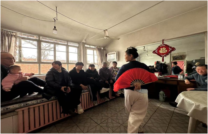 1月25日,“舞漾乡野”团队成员王淙墨与马菽霞,分别于家乡张家口市桥东区东榆林村、唐山市丰润区沙流河村,为当地村民带来了一场极具地方特色的河北秧歌(冀东地秧歌)表演,以翩跹舞姿传承这一古老艺术。两位团队成员身姿轻盈,以饱满的精神状态踏出富有韵律的步伐,展现出了河北秧歌极具鲜明的个性,引得现场观众此起彼伏的掌声。