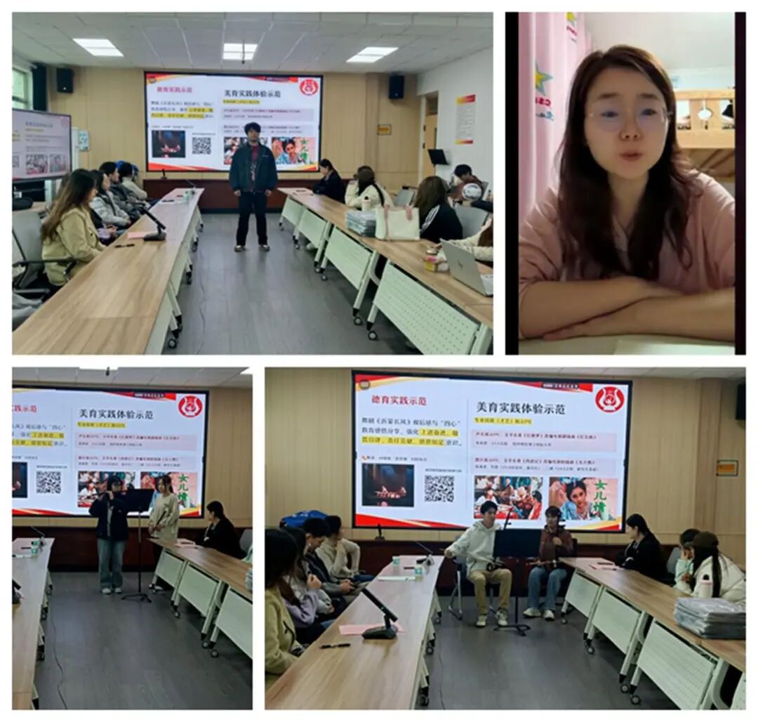 美育实践展示精彩纷呈,班内学子、优秀校友在现场、直播间联动展示话剧、电视剧插曲《红豆词》《红豆曲》的诗乐之美与自身的演唱之美;三位班内本科生与一位研究生先后以竹笛、二胡倾情演奏PK《西游记》插曲《女儿情》,古典味、民族味、当代审美趣味的有机融合让场内外听众沉浸于美的享受之中。活动嘉宾、学院副院长、二胡演奏家王海华教授肯定了唱奏者的专业水准,提出精进建议,并带领全场演唱1987版电视剧《红楼梦》主题曲《枉凝眉》,将体验活动推向高潮。