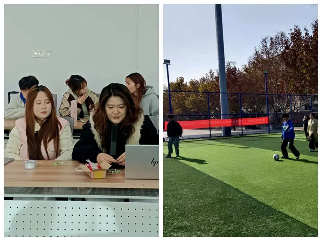 “劳育育行”实践与“体育强身”实践环节一静一动,同学们动手完成20余件手作,参加3场分组对抗足球赛,徜徉在劳动的光荣、运动的激情与愉悦快乐之中,很好地增强了班级的凝聚力与协作意识。