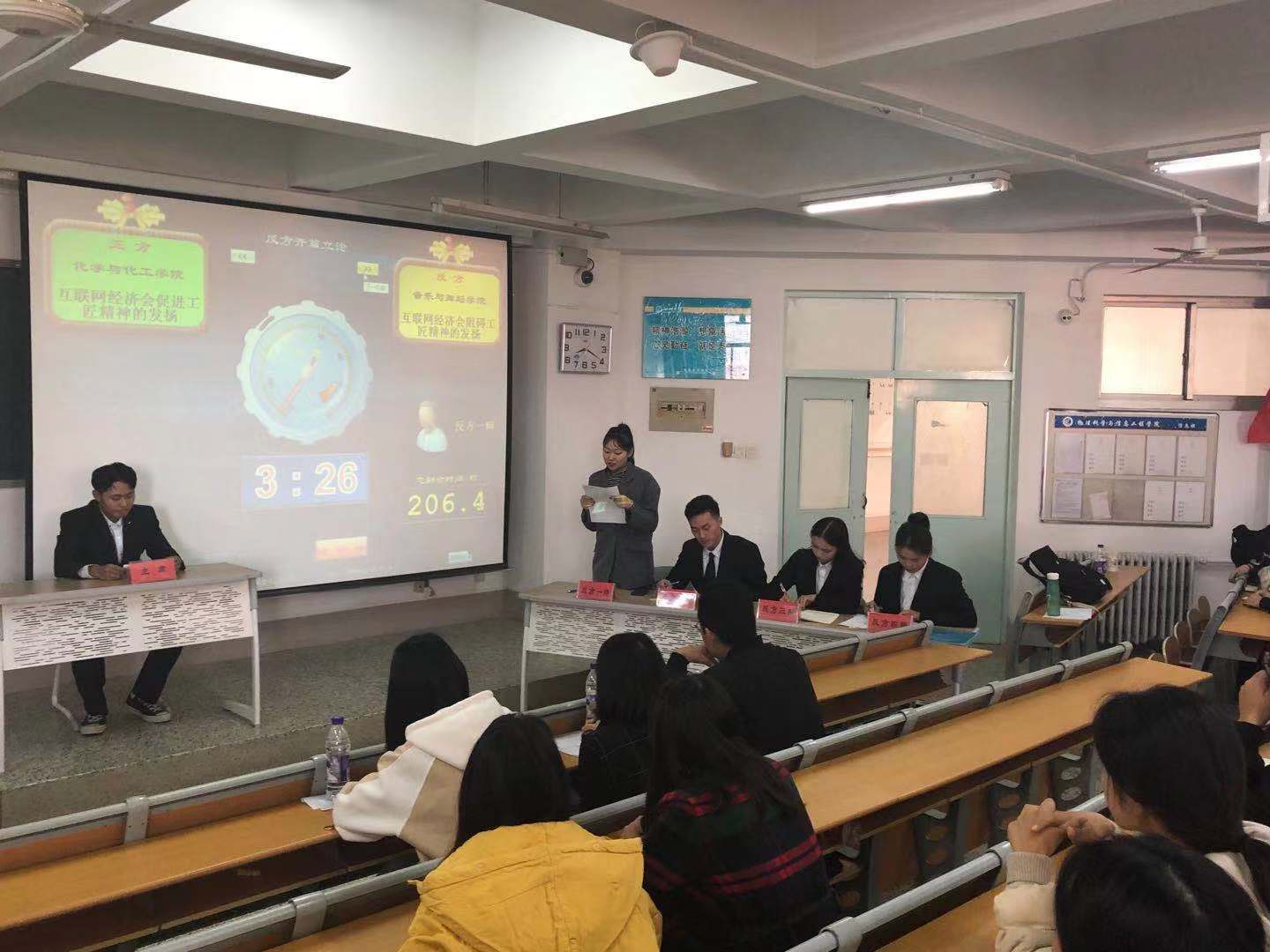 11月10日上午,成人网 与化学与化工学院辩论赛在11号教学楼顺利举行。