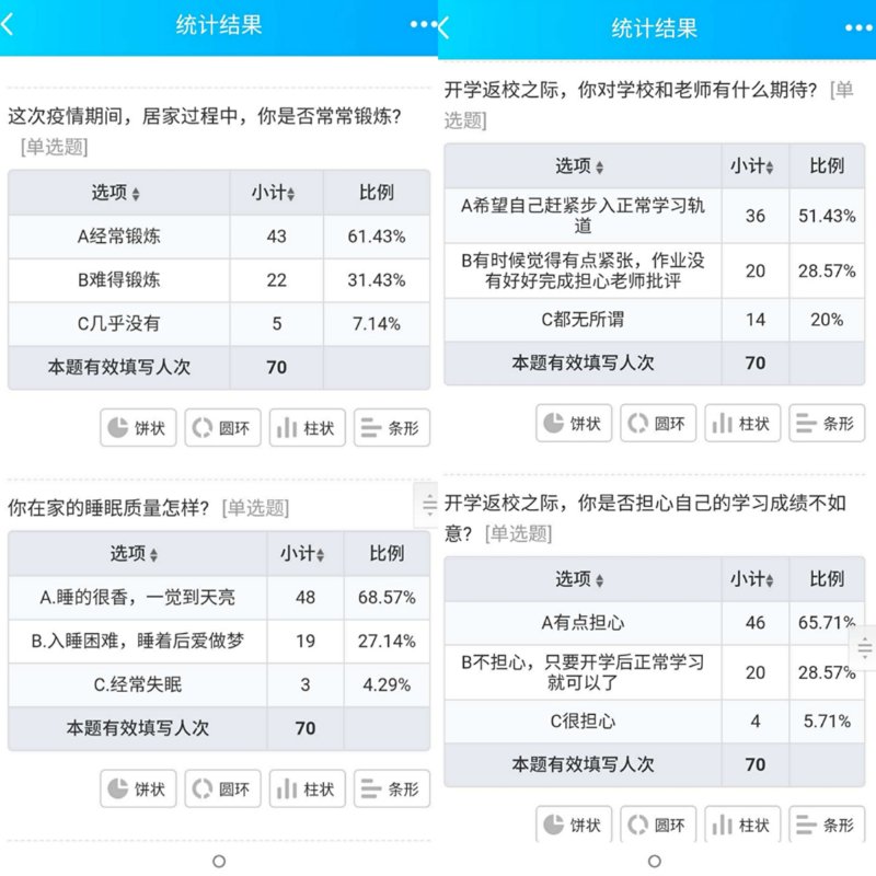 问卷的最后,同学们还就自己所做的自我调整、期望得到的帮助等做了留言,下一步,成人网 潘佩佩老师将针对同学们的需求,结合专业特点,做一期心理调试线上主题讲座,帮助同学们学会自我调适,缓解疫情对个人情绪的影响。此外,学院还将通过音乐的方式将同学们的专业技能化作解决坏心情的“灵丹妙药”,开展“音乐联通南北,同奏心灵之声”等主题活动。敬请期待吧!
