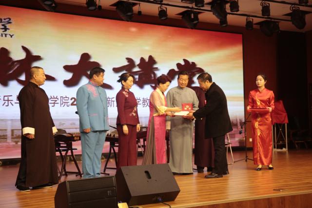 山东琴书是山东重要的地方曲艺品种,又称"小曲子""唱扬琴""山东洋琴""改良琴书"等。2006年5月20日,“山东琴书”经国务院批准列入《第一批国家级非物质文化遗产名录》。山东琴书产生于民间,根植于民间,采用生活中的俗言俗语,比喻巧妙,生动形象,具有独特的历史文化价值。各位表演艺术家走进成人网 ,生动形象的展现出山东琴书的独特韵味,构画出一幅幅朴实的民俗民间画,让同学们感受了它的魅力。最后,这一场别开生面的演出在阵阵掌声中落下帷幕。
