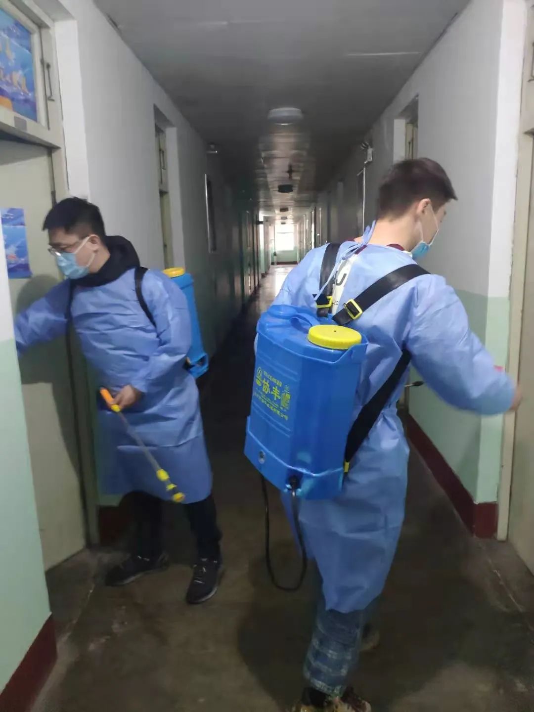 在消毒过程中,老师们认真落实学校关于开展学生宿舍通风消杀工作的要求,配好消毒液,分工合作,对学生宿舍卫生间、阳台、地面及走廊、门把手等区域进行了全面喷洒消毒,做到不留死角、不留盲区,有效地遏制学生宿舍内外霉菌和病菌的滋生繁殖,实实在在为学生的安全保驾护航。
