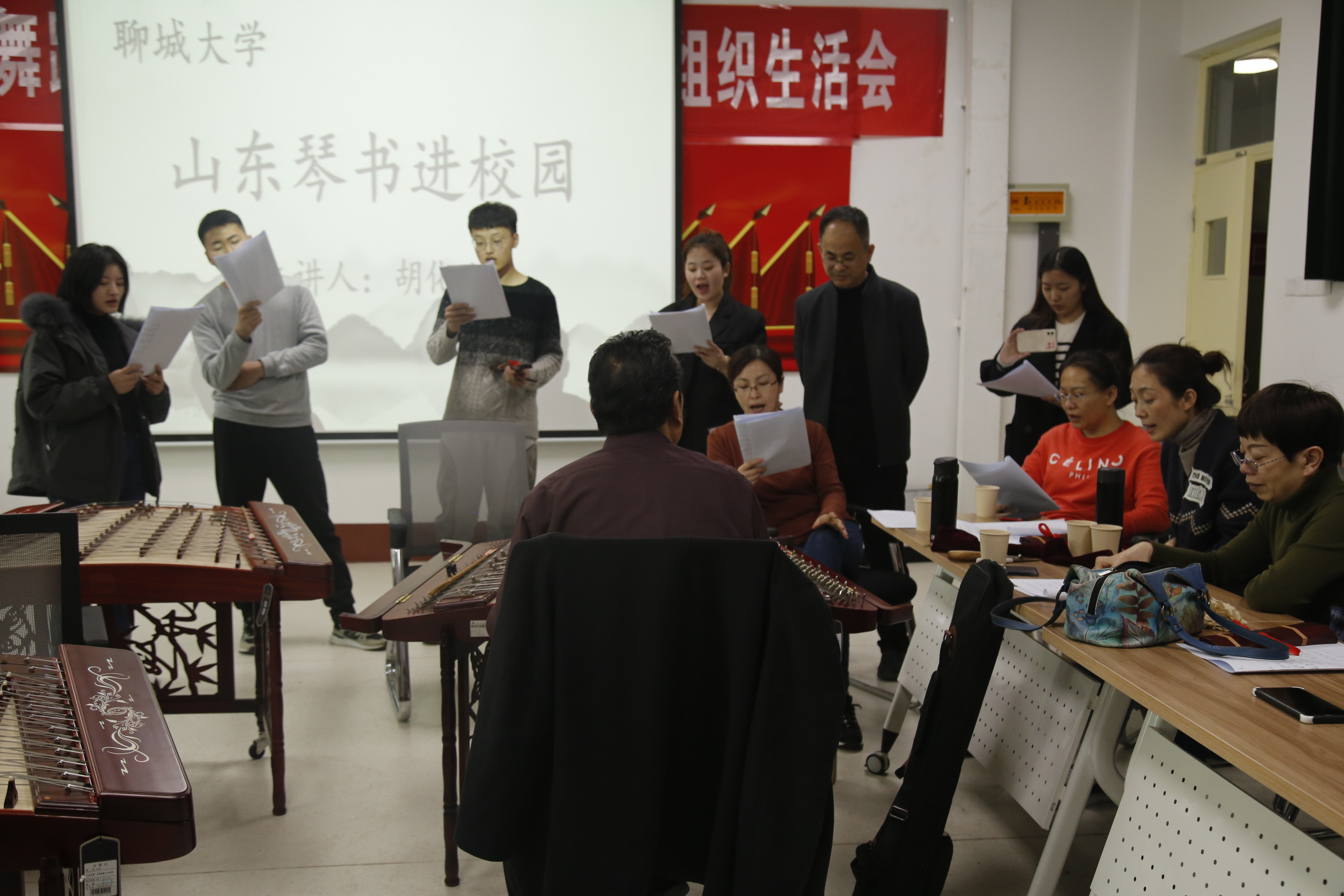 胡化山首先介绍了山东琴书的基本概念,向学生们解释了山东琴书的起源和分支流派的特点。接着通过擂琴、软弓胡、扬琴、拍板等乐器的演奏和声情并茂的演唱,让大家更好的理解了山东琴书的演唱特点和技巧。接着,胡化山带领参加教学活动的师生学习山东琴书的演唱。最后,一首《水漫金山》在胡化山的演绎中,将大家带入其中,身临其境,让师生们感受到琴书的魅力。