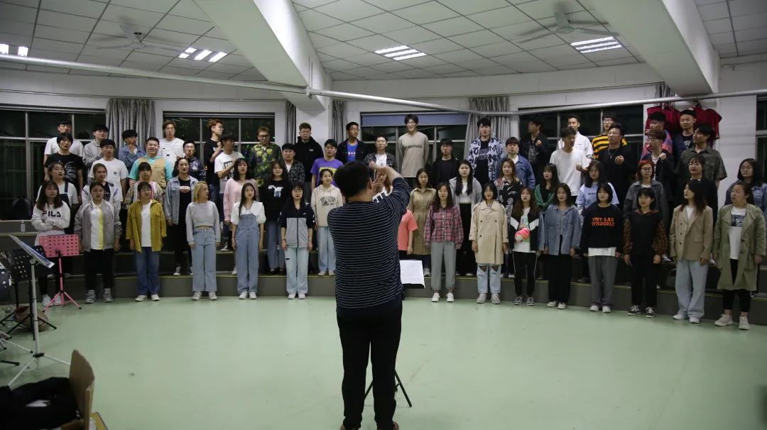5月10日晚上7点半,嘹亮的歌声伴随着阵阵悠扬的琴声,从音乐舞蹈学院排练厅内传出,“崇乐”合唱团的学生们以饱满的精神迎接2021年大学生合唱艺术节的到来。