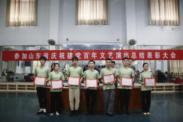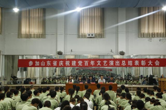 表彰大会开始前,到会领导、老师和同学们一起观看了此次演出的纪实视频,和演员们一起回忆了此次演出的点点滴滴。牟艳丽向大家介绍了参演基本情况,对于学院师生演出团队在本次《百年奋进铸辉煌——山东省庆祝中国共产党成立100周年文艺演出》中的优秀表现给予了高度评价并进行通报表彰。梁建新宣读表现突出个人名单,到会领导、老师向在此次演出活动中表现突出的邓香煜等12人予以表彰并颁发荣誉证书。带队教师朱歌、陈蓝天先后进行发言,回忆了参演过程中发生的感人故事,对参演的150名学生纪律严明、追求完美、团结友爱、无私奉献的纪律作风提出表扬。19级李光宇和20级李芷萱代表学生进行了发言,简述了参演体会和心得,他们表示此次演出活动对他们来说是一次难得的人生经历,收获满满。