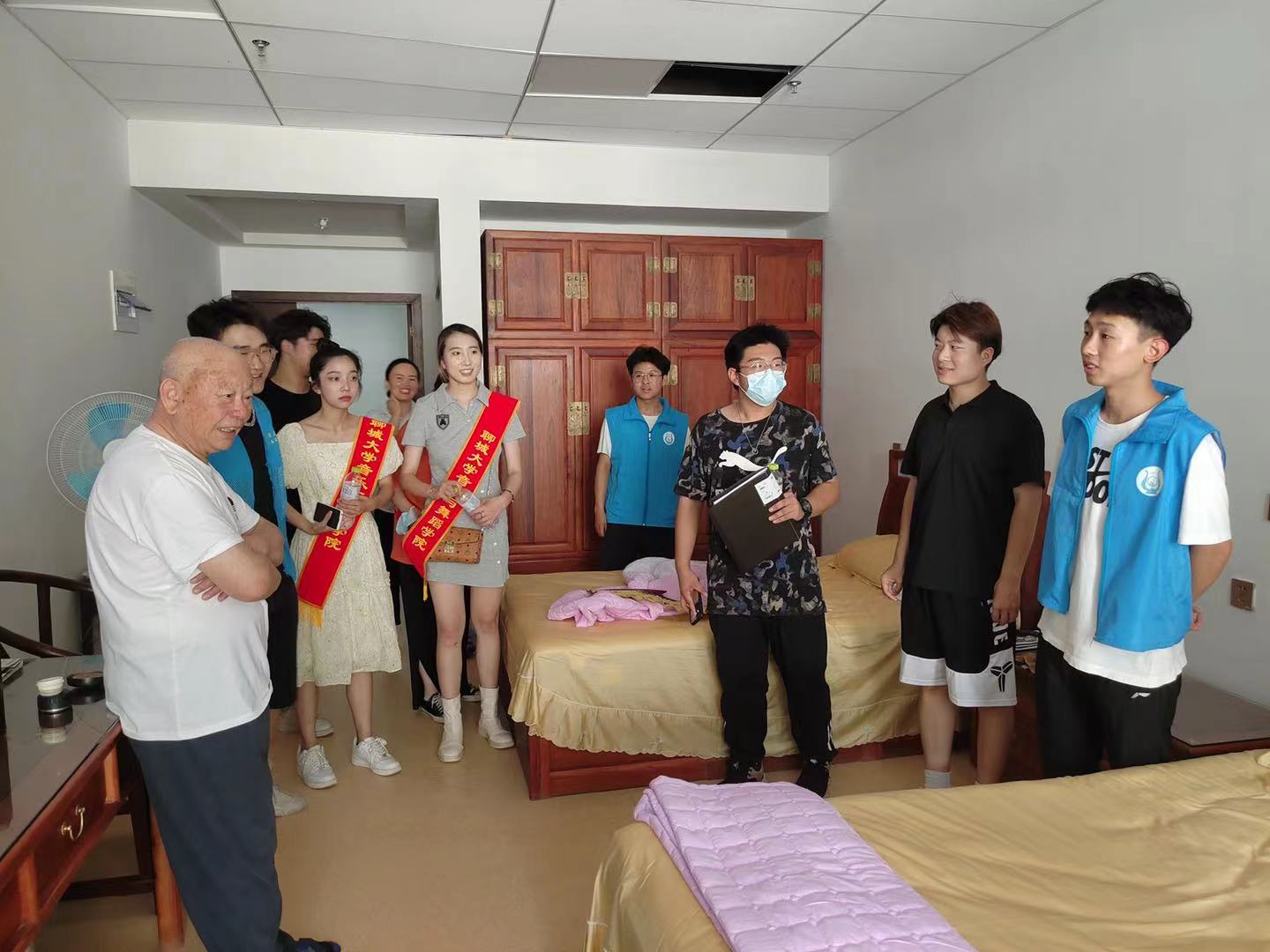 在活动开展期间,志愿者们到各个房间,陪老人们拉家常、讲笑话和养生小知识,给老人们带去欢笑和快乐;帮助老人整理内务,打扫卫生,捶捶背;到户外和老人聊天,听老人讲讲过去,讨论一下现在,不仅使老人摆脱了寂寞,也使志愿者受到了教育。随后志愿者们为老人带来了精彩的文艺表演。当老人当听到《没有共产党就没有新中国》这首歌曲时,用手敲在腿上敲打着拍子,嘴里哼唱着。萨克斯独奏《最美不过夕阳红》令人陶醉;二胡独奏《赛马》展现了一幅生动热烈的赛马场面。最后,节目以集体大合唱《歌唱祖国》结束,爷爷奶奶们站了起来送给了志愿者们热烈的掌声。看到老人们灿烂的笑容,听到老人们爽朗的笑声,同学们充分体会到了本次慰问活动的意义所在——弘扬志愿精神,关注老年群体。两小时的志愿服务时间很快过去,大家合影留念,志愿者们和老人们一一告别。