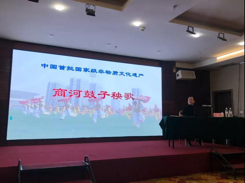 第一天·开班仪式与保护非物质文化遗产.25日上午举行了鼓子秧歌表演团体培训班开班仪式。山东省非遗保护中心工作人员刘丽君老师主持,中国艺术研究院舞蹈研究所副所长、研究员、博导,联合国教科文组织非遗公约国际教官,魏公村舞蹈产业联盟会长江东老师;原山东艺术学院舞蹈学院院长,济南市歌舞剧院艺术总监,副院长,山东省舞蹈家协会常务副主席赵宇老师;商河县文化馆馆长,济南市舞蹈家协会副主席徐静老师以及各地的老师和学员们共计100余人参加。秉持着认真笃学的态度以及积极向上的精神,开始了为期四天的学习之旅。在开班仪式上刘丽君谈到,以习近平同志为核心的党中央对非物质文化遗产的高度重视,对非物质文化遗产保护工作寄予的殷切厚望。这次培训希望可以提高非物质文化遗产保护水平。此天课程是由江东针对非遗传统舞蹈保护这一主题进行。在课程中江东对联合国教科文组织文化部的九个公约进行了解释说明和详细阐述;对国家级和山东省非遗代表性项目名录做了展示与分析,他强调“非遗传统文化无优劣之分”,我们在保护传承时应该铭记这一点。最后,他详细讲解了非物质文化遗产的定义和保护措施。中国历史文化底蕴深厚,舞蹈文化源远流长,我们应该保护好民族瑰宝,传承好非遗文化。