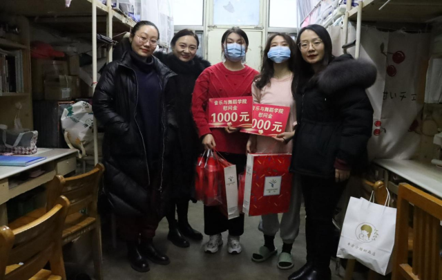 1月6日晚,成人网 党委副书记、副院长张进军团委书记梁建新、舞蹈系主任李雯、教师朱歌、辅导员陈蓝天、张萌、石晓晗一行来到群星19号楼和学苑公寓5号楼进行走访慰问。