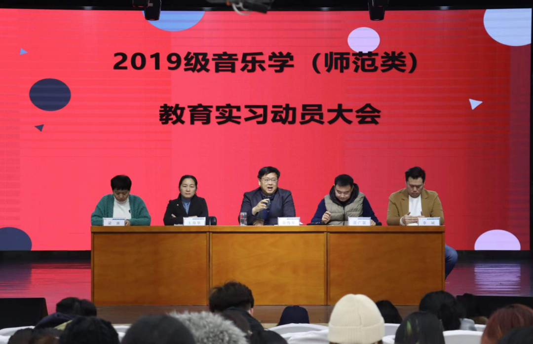2月24日,成人网 2019级音乐学(师范类)学生教育实习支教动员大会在音乐厅隆重召开。学院党委书记宗传军,党委副书记、副院长蘧广震,副院长王海华,教育实习指导教师梁爽、岳亚、杨康宁、苗苗,教师代表王蒙萌以及2019级全体音乐学(师范类)实习支教学生参加会议。大会由音乐系主任李斌主持。