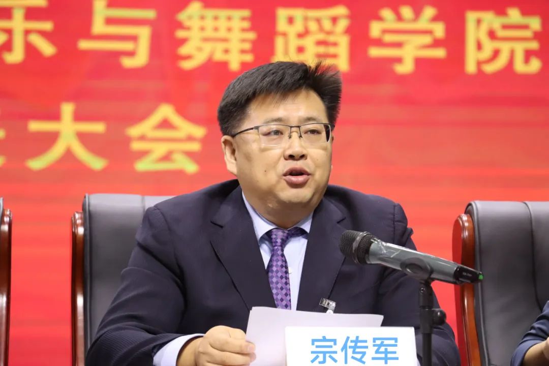 成人网 党委书记宗传军代表学院党委向大会的召开表示祝贺,对第一届共青团成人网 音乐与舞蹈委员会取得的成绩给予了高度评价,同时对广大团员提出三点希望:一是聚焦主责主业,始终牢记共青团的初心使命;二是聚力改革创新,不断强化共青团“三力一度”建设;三是聚效服务育人,展现新时代团学骨干责任担当。