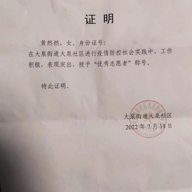 我是一名即将大二的学生,在返乡前期,我打算要为自己的家乡贡献出一份力量。暑假期间,疫情风波再次向我的家乡袭来,于是我主动加入了大泉社区的疫情防控志愿者团队。