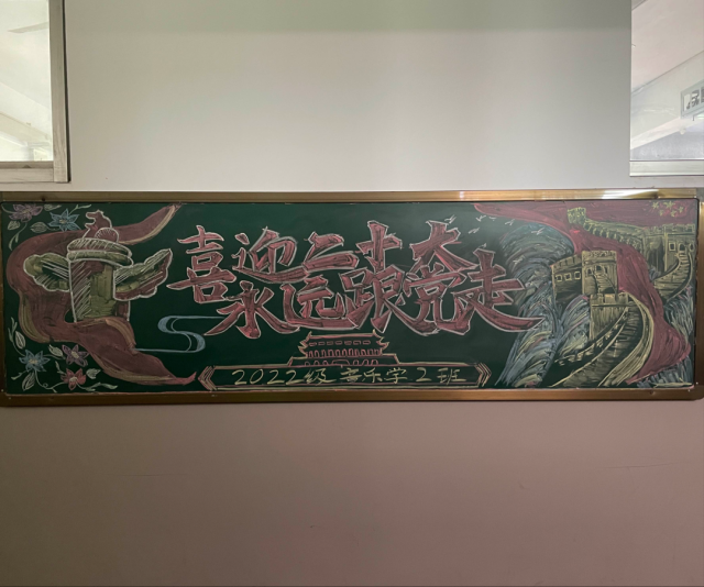 为迎接党的二十大胜利召开,成人网 创作“喜迎二十大 永远跟党走 ”主题黑板报,2022级各班团支部积极参加。