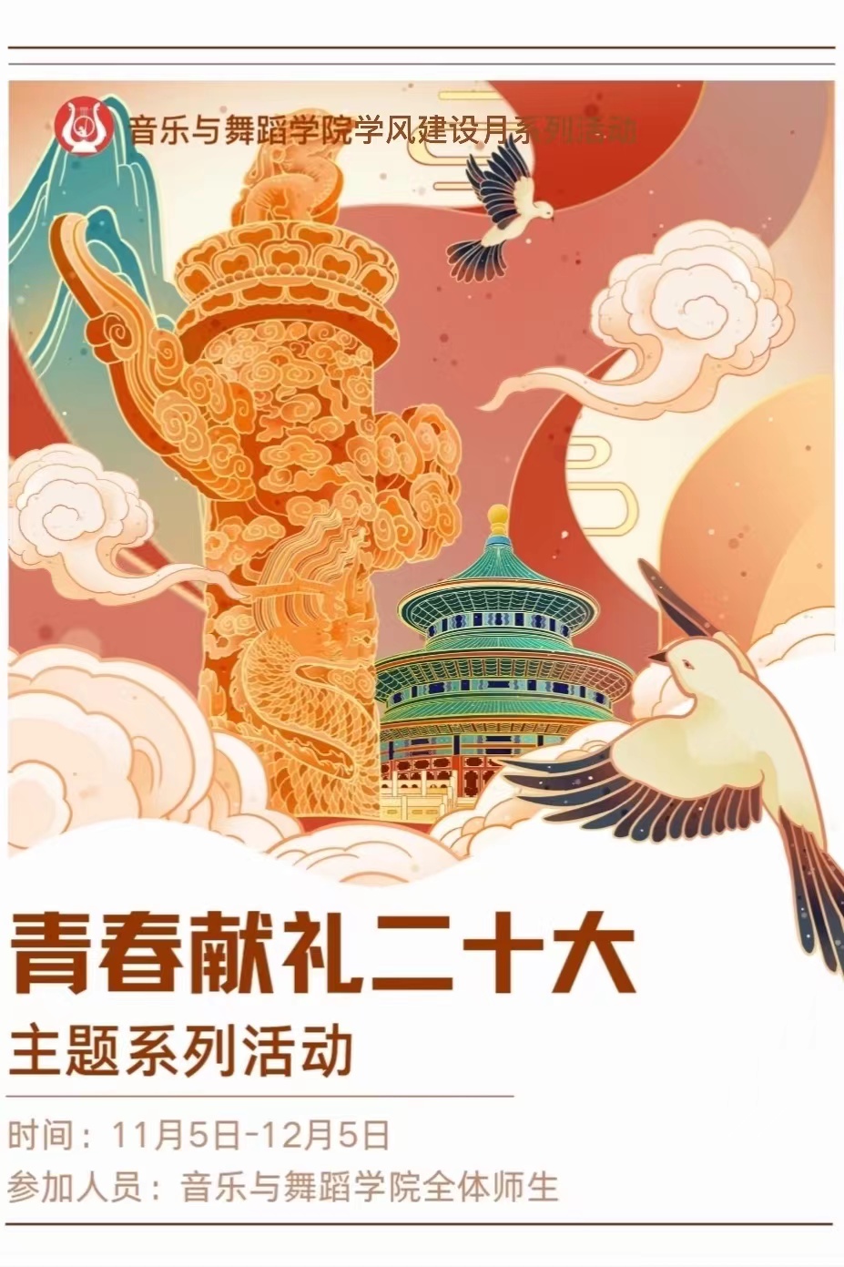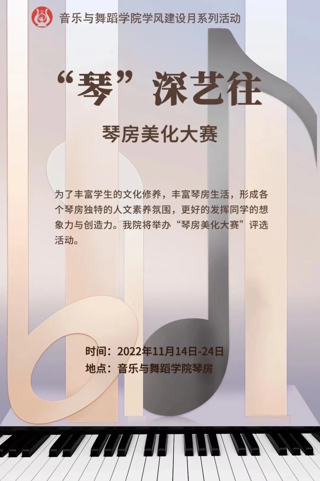 此次活动时间为11月5日至12月5日,期间将举办青春献礼二十大主题教育活动、艺术实践周系列活动、教室、宿舍、琴房美化设计大赛活动、师生运动大比拼系列活动等,将从5个方面开展:
