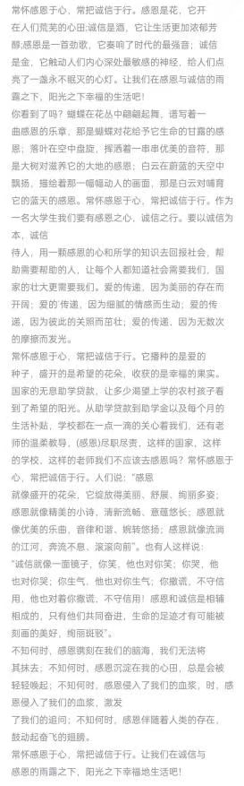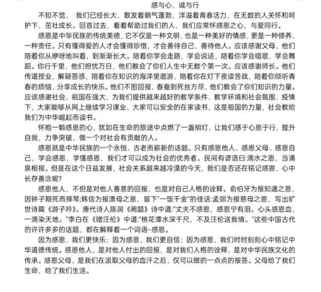 做人以感恩,方为生存之本;为人以诚信,犹有发展之源。2023年5月20日成人网 于于线上开展“感恩于心,诚信于行”的诚信感恩主题征文活动,成人网 全体学生积极参与。
