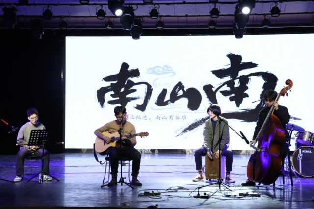 花枝鼠乐队为同学们带来的两首曲目回味了青春的美好,也感受到了音乐的无限魅力!漫天过海乐队为同学们带来的《夜空中最亮的星》,用动听的嗓音和吉他抒情的旋律相结合,使同学们身心愉悦、回味无穷!“南山南北秋悲,南山有谷堆”,一首《南山南》将同学们带入了回忆之中,吉他、长笛、大提琴等乐器的结合使观众们身临其境,仿佛回到了从前......Dear Life乐队用其独特的风格演绎出了不同的曲目,在吉他和摇滚乐的配合下让观众们感受那平淡而热烈的人生!