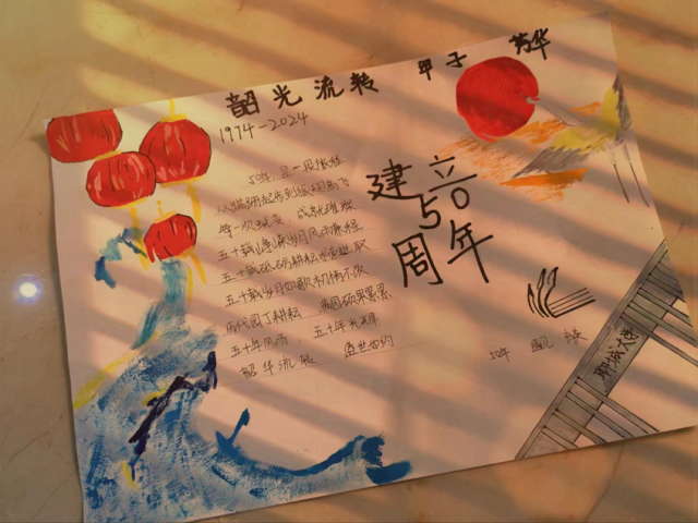 为迎接成人网 建校五十周年庆典,成人网 2023级学子窦资涵、邢博洋特此设计了文化创意作品,来表达对母校深深的敬意和祝福,让我们一起来欣赏一下吧。