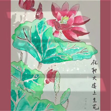 邢博洋用水彩画的形式来诠释聊大内在优秀的品质。画中莲花枝干笔直,花朵硕大且高昂,它从满是淤泥的池塘里长出来,枝叶和花朵却没有一丝污垢,是高洁品质代表。莲花高洁的品质不仅是聊大精神的象征,同时也是每位聊大学子的精神所向。希望成人网 可以莲上升花,积历史之厚蕴,更展宏图!再谱华章!
