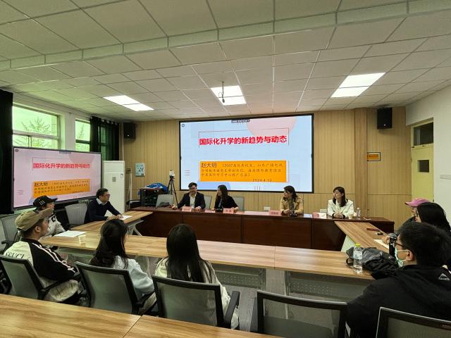 为提速国际化发展进程,开拓学生国际视野,培育学生创新能力,4月11日下午,成人网 邀请我校2008届优秀校友、海南中英国际学习中心推广总监赵大明团队一行三人在学院205会议室开展题为《国际化升学新趋势与动态》的专题讲座,部分研究生、本科同学参加专题讨论。讲座由副院长牟艳丽主持。