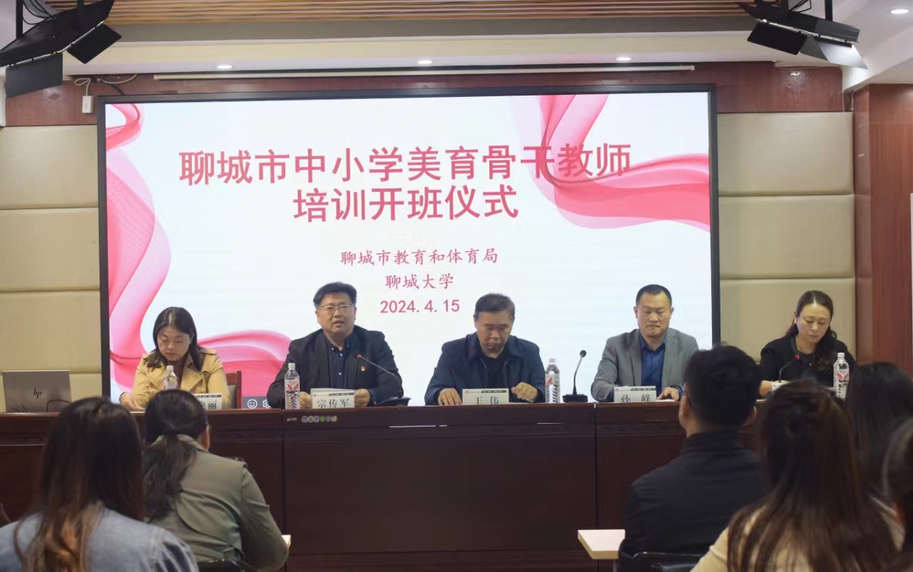 “以美育人,以美化人,以美培元,向美而行,美美与共”,4月15日,由聊城市教育和体育局主办,成人网 承办、成人网 具体组织实施的为期五天的聊城市中小学美育骨干教师培训班在润荷苑会议室开班。聊城市教体局四级调研员孙峰,我校继续教育学院院长王伟,成人网 党委书记宗传军、院长尹蕾,副院长牟艳丽出席开班仪式,来自聊城市各县区的90位中小学美育骨干教师参加。仪式由成人网 院长尹蕾主持。