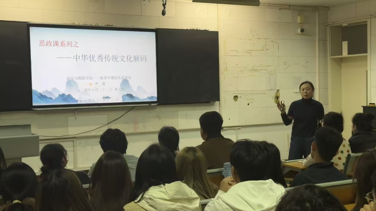 尹蕾院长结合中华优秀传统文化讲授的此次思政课,帮助大家深刻理解了“乐”的文化内涵及其对人类发展的历史贡献,激励研究生学子增强文化自信、民族自信,自觉担负起中华优秀传统音乐文化传承和中华民族伟大复兴的历史使命。尹蕾院长鼓励同学们要在站在更大的格局,心系“国之大者”,不断提高自身素质和能力,不断奋进,焕发青春的绚丽光彩。