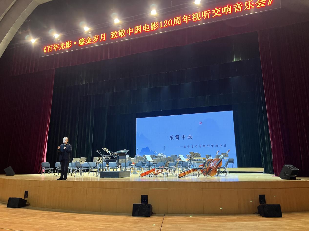 乐团指挥肖超先生为学院师生带来了一场生动有趣的音乐导览。他详细讲解了中西方交响乐团的构成差异,揭秘了音乐会的主要流程,并深入浅出地阐述了如何用音乐语言诠释中西方不同的美学意境。肖指挥还寄语在场学生,希望大家珍惜学习时光,勤勉练琴,未来能够成长为优秀的演奏家。