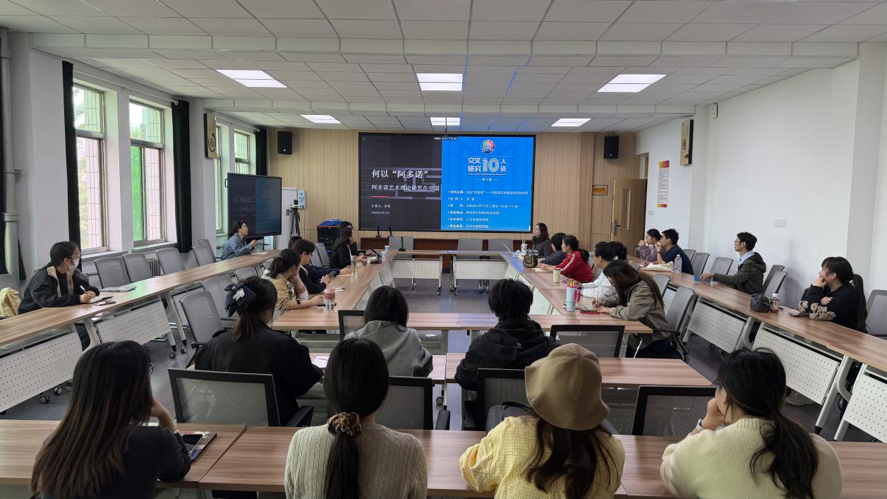 会上,岳亚老师围绕阿多诺艺术理论及其在中国的传播研究进行了系统讲解。她从“为何是阿多诺——一个批判理论的‘中国之旅’”切入,结合文化工业批判与否定辩证法两大核心命题,深入剖析了阿多诺艺术理论的核心理念、在中国的传播历程、关键人物与代表性成果,以及本土化实践与批判性反思等内容。讲座内容翔实、视野宏阔,为在场师生深入理解阿多诺艺术批判理论的中国化进程提供了重要参考。讲座后,与会师生围绕阿多诺理论的当代价值、跨学科研究方法论等议题展开了热烈讨论。